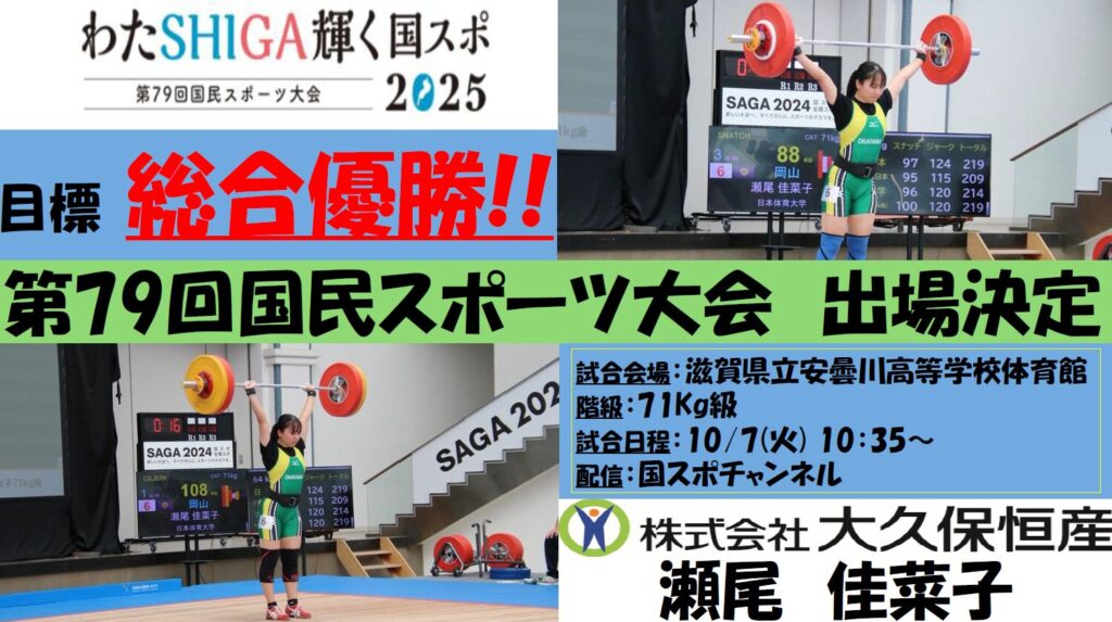 大久保恒産の瀬尾佳菜子が第79回国民スポーツ大会に出場しました!